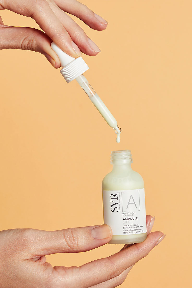 Le rétinol est un dérivé de la vitamine A appartenant à la famille des rétinoïdes. Il est métabolisé en acide rétinoïque, la forme active de la vitamine A, agissant comme un puissant actif kératolytique et anti-âge. En stimulant la prolifération des kératinocytes, favorisant ainsi le renouvellement cellulaire et l'épaississement de l'épiderme, il aide à compenser la perte de tissu cutané liée à l'âge. Il contribue également à maintenir la fermeté et l'élasticité de la peau, en limitant la dégradation du collagène et de l'élastine tout en stimulant leur production. Parallèlement, cet actif star des soins anti-âge, agit sur l’uniformité du teint et le stress oxydant en neutralisant les radicaux libres. Le rétinol peut être irritant et asséchant pour les peaux sensibles et est plutôt recommandé en utilisation de nuit. Il est également déconseillé aux femmes enceintes et allaitantes. On le retrouve dans les produits SVR suivants :